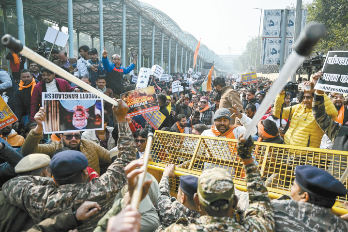 就在哈迪去世当天,孟加拉国印度教徒迪普·钱德拉·达斯因所谓的辱教罪被打死并焚烧尸体,此事引燃印度民众的怒火。孟加拉国驻印高专署和高专住所,以及孟加拉国位于印度西里古里的签证中心接连遭到冲击和破坏,世界印度教大会23日牵头在位于新德里的孟加拉国驻印高专公署前组织大规模抗议,孟买、加尔各答、海德拉巴等地也因不满孟加拉国针对印度教徒的暴力举行抗议活动。孟外交部23日再次召见了印度驻孟高专,就外交人员受到的冲击表达严重关切;数小时后,印度也召见了孟加拉国驻印高专。